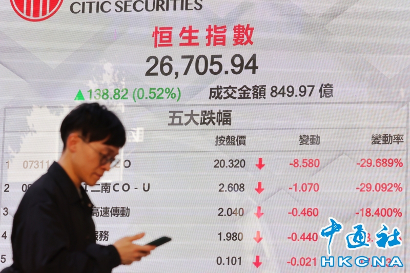 香港恆生指數漲138.82點 報26705.94點收盤分享到:
