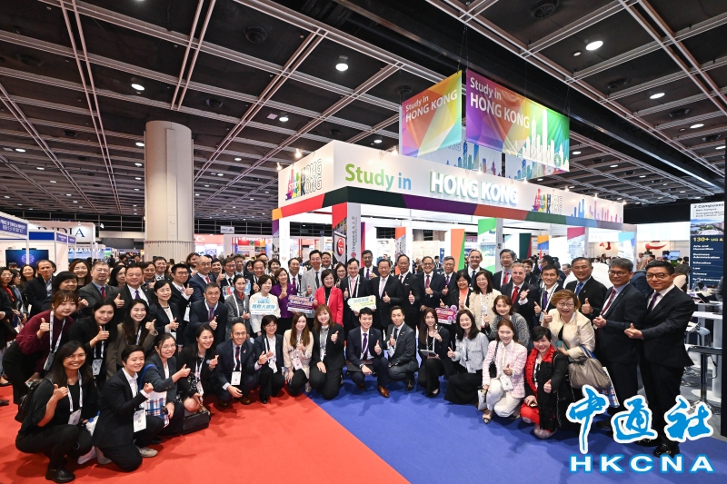 •   2月24日,2026亞太國際教育協會年會暨展覽開幕典禮舉行。圖為香港特區政府教育局局長蔡若蓮於典禮後參觀“留學香港”展館並與一眾嘉賓合照。 香港中通社圖片