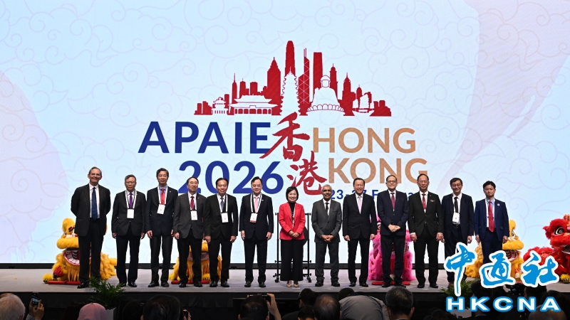 •   2月24日,2026亞太國際教育協會年會暨展覽開幕典禮舉行。圖為香港特區政府教育局局長蔡若蓮(中)等嘉賓在典禮上合照。 香港中通社圖片