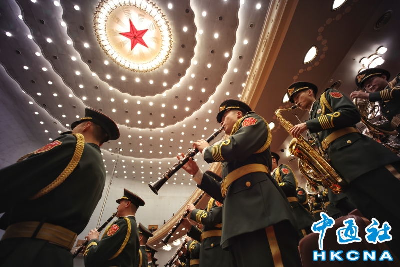 •   3月4日,全國政協十四屆四次會議在北京人民大會堂舉行開幕會。圖為軍樂團在演奏。 (香港中通社記者  謝光磊 攝) 香港中通社圖片