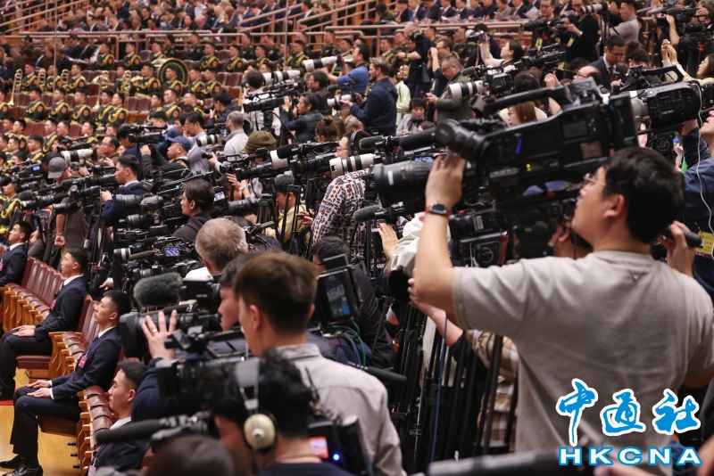 •   3月5日上午9時,十四屆全國人大四次會議在人民大會堂舉行開幕會。圖為大批中外記者關注開幕會。(香港中通社記者  謝光磊 攝) 香港中通社圖片