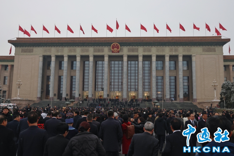•   3月5日上午9時,十四屆全國人大四次會議在人民大會堂舉行開幕會。圖為開幕會前,全國人大代表走向人民大會堂。(香港中通社記者 謝光磊 攝) 香港中通社圖片