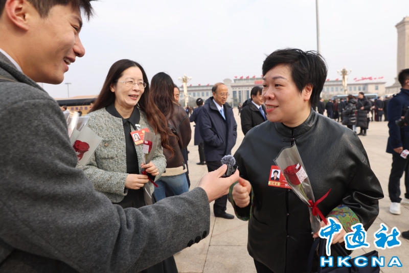 •   3月7日,“三八”國際婦女節將至,有記者向女性委員送花。當日,全國政協十四屆四次會議在北京人民大會堂舉行第二次全體會議。(香港中通社記者  謝光磊 攝) 香港中通社圖片
