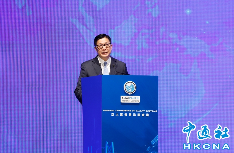 •   3月11日,香港海關一連三日在港舉辦亞太區智慧海關會議,逾200名來自33個國家和地區代表出席,交流智慧海關發展經驗。圖為香港保安局局長鄧炳強在開幕式致辭。(香港中通社記者 陳奕啟 攝) 香港中通社圖片