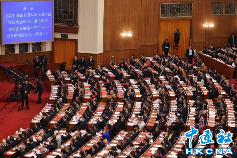 •   3月12日,十四屆全國人大四次會議表決通過了關於國民經濟和社會發展第十五個五年規劃綱要的決議。(香港中通社記者 謝光磊 攝) 香港中通社圖片