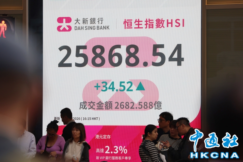香港恆生指數漲34.52點 報25868.54點收盤分享到: