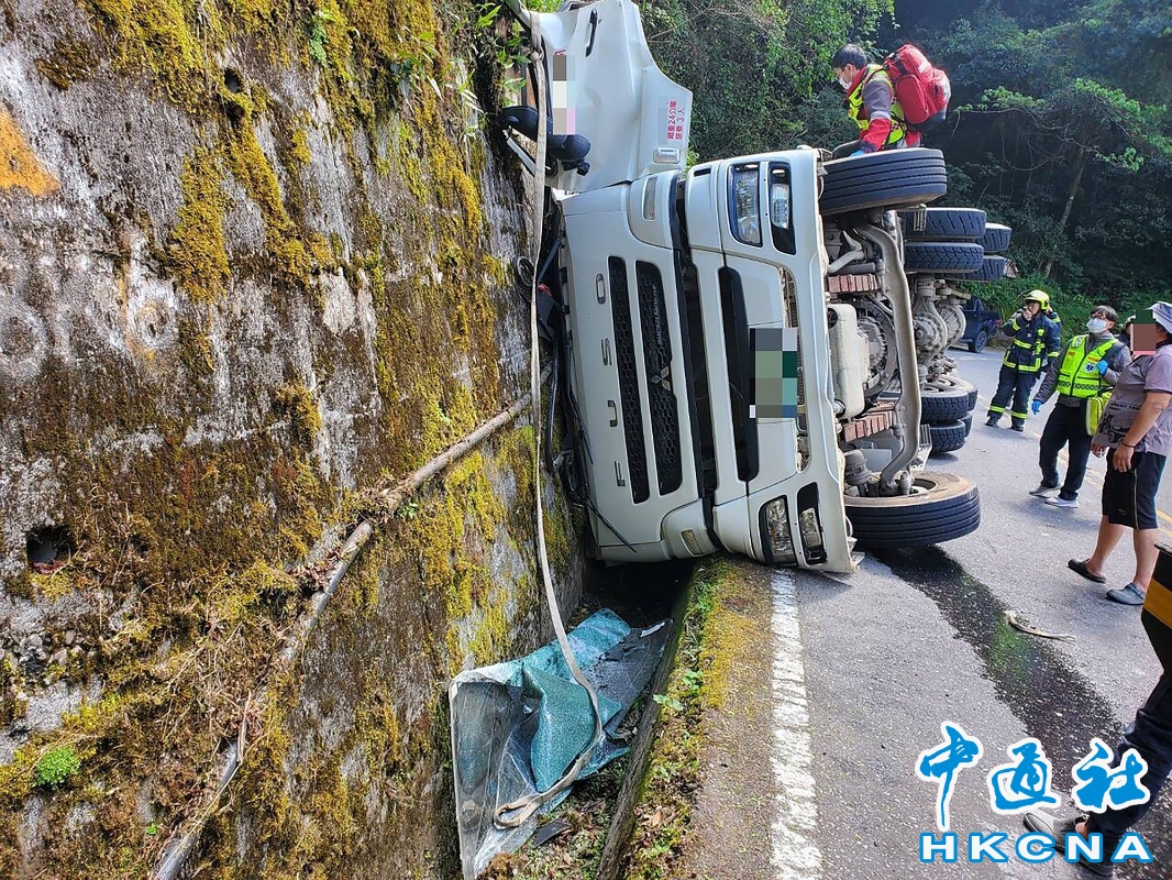 •   4月2日下午,台灣台中市和平區中橫便道(台8線),一輛預拌混凝土車行經德基往梨山方向時,疑似在彎道處因重心不穩導致車輛側翻,司機受傷並被送醫救治。香港中通社圖片