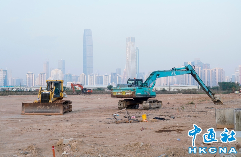 •   4月16日,香港發展局局長甯漢豪表示,推進北部都會區發展繼續是未來一年重中之重的工作,北都9個新發展區當中4個的土地平整和基建工程已如火如荼。圖為港深創科園土地平整區。(香港中通社記者 陳奕啟 攝) 香港中通社圖片