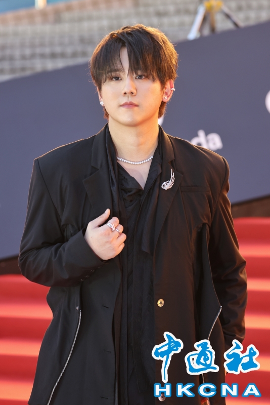 •   4月19日,香港影壇盛事“第44屆香港電影金像獎”頒獎禮在香港文化中心舉行。一眾演員從尖沙咀海濱長廊踏上紅地氈,以最靚姿態示人。圖為姜濤亮相紅地毯。 (香港中通社記者 謝光磊 攝) 香港中通社圖片