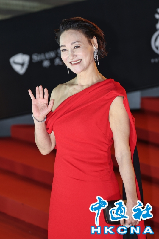 •   4月19日,香港影壇盛事“第44屆香港電影金像獎”頒獎禮在香港文化中心舉行。一眾演員從尖沙咀海濱長廊踏上紅地氈,以最靚姿態示人。圖為惠英紅亮相紅地毯。 (香港中通社記者 謝光磊 攝) 香港中通社圖片