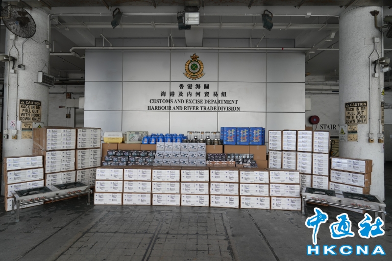 •   香港海關於4月13日偵破一宗涉嫌利用遠洋船走私貨物往澳洲的案件,檢獲大批懷疑走私貨物,估計市值共約二千萬元。圖為檢獲的懷疑走私貨物。 香港中通社圖片