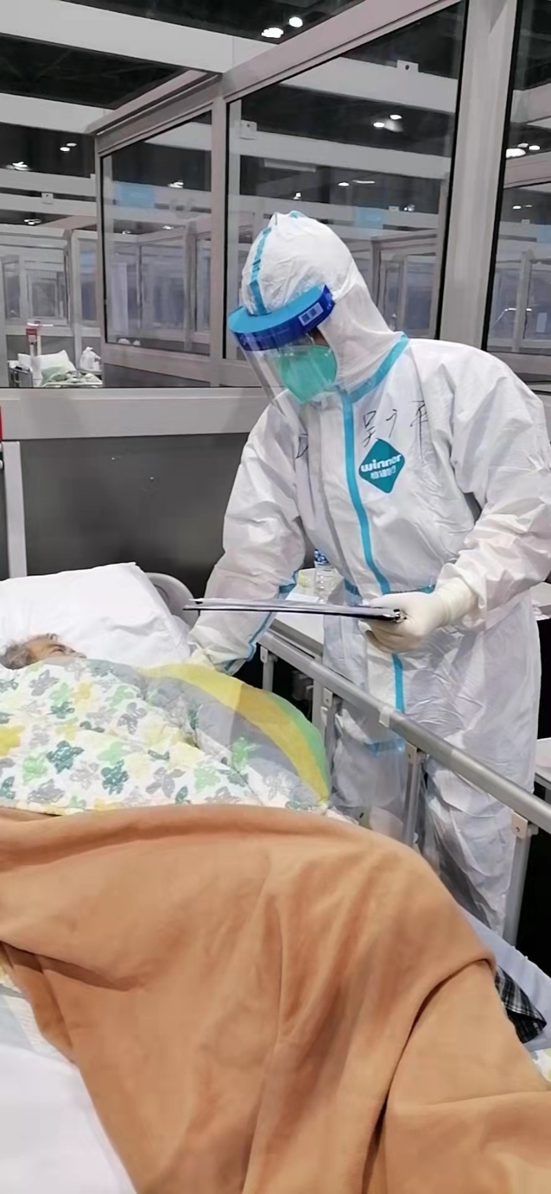 在亞博館新冠救治中心,病人大多為年齡在60歲以上,有不少是80歲甚至100歲。吳廣平遇到了一位特殊的病人,87歲抗美援朝空軍英雄何老先生。“我第一次進亞博館的時候,何老看了我衣服有‘中醫’兩個字,表現得很開心,他說平時身體不好都會吃中藥,確診後很怕進來會沒有中藥。”
