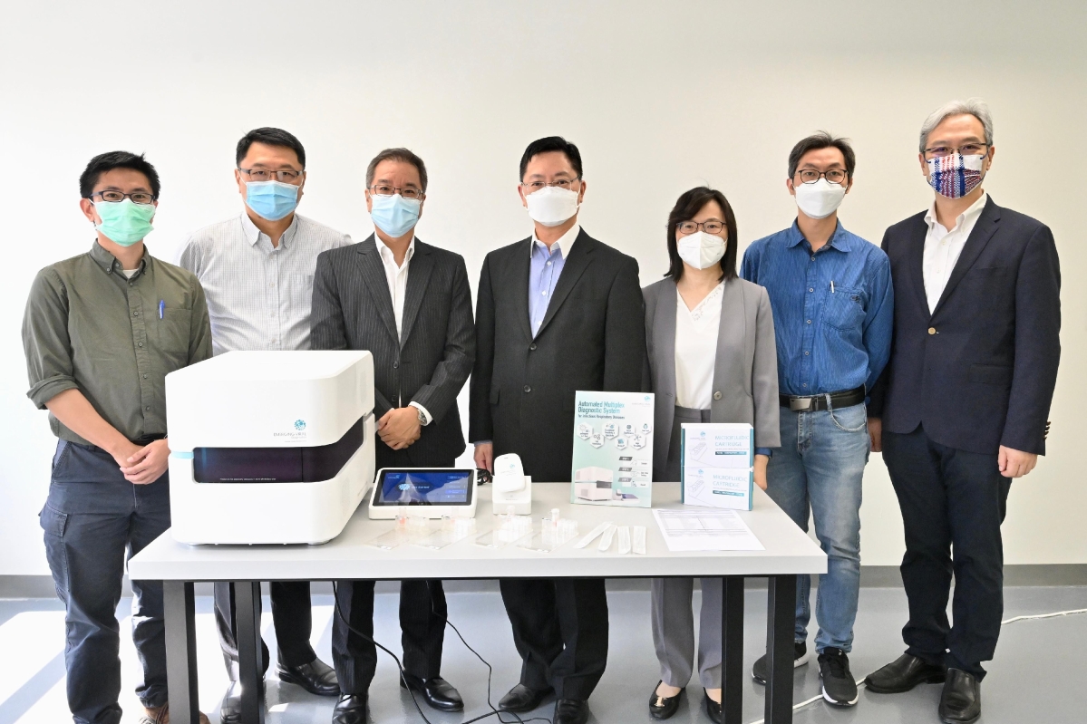 香港中通社5月5日電 香港特區政府創新及科技局局長薛永恒聯同創新科技署署長潘婷婷5日視察大埔創新園的醫療用品製造中心,並參觀三家進駐中心的企業,實地了解企業如何結合先進製造及科研能力,加快本地研發及生產過程,提升個人防護裝備及醫療診斷系統的本地供應。