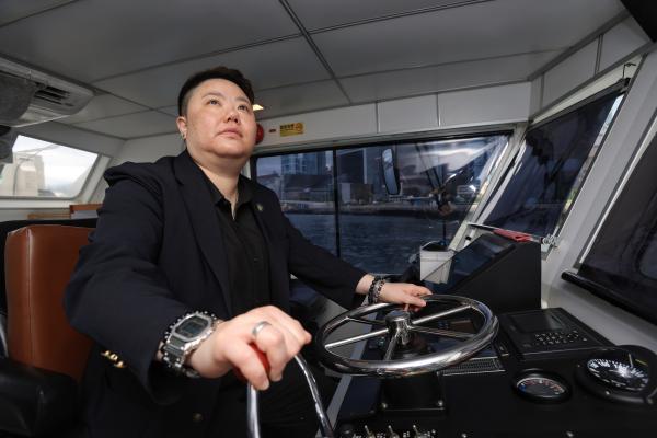 “九十年代很少港人行船,從1993年到2003年行船的港人或許只有數個。但在我2003年投身這行之後就越來越多年輕人入行,身邊從事航海業的女性也變多了,女性在航海業地位也提高。”一頭利索短髮,香港首位女船長陳嘉敏在海上接受香港中通社的專訪。