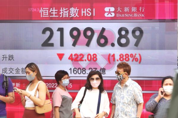 香港中通社6月29日電 (記者 崔靜雯)港股連升4天後失守,29日恆生指數收報21996點,跌422點或1.88%;大市成交額1608.27億港元。