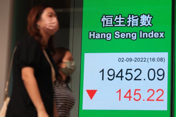 香港中通社9月2日電 (記者 崔靜雯)市場關注美國即將公布非農數據,港股持續走弱。恆生指數2日收報19452點,跌145點或0.74%,大市成交達1102.01億元(港元,下同)。恒指全周累跌717點或3.6%,9月開局兩天累跌502點。