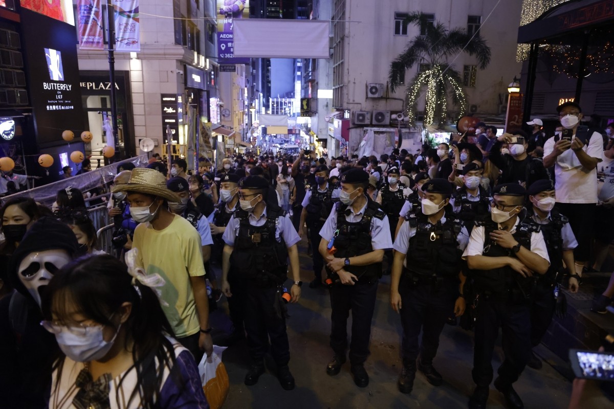 香港中通社10月31日電 題:香港萬聖節氣氛未減 市民有序暢聚蘭桂坊