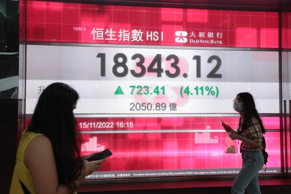 香港中通社11月15日電 (記者 崔靜雯)中美元首會晤達成六項共識,繼續帶動港股上漲;15日恆生指數收市報18343點,升723點或4.1%。大市成交量達2050.89億元(港元,下同),連續兩天成交量超2000億元。