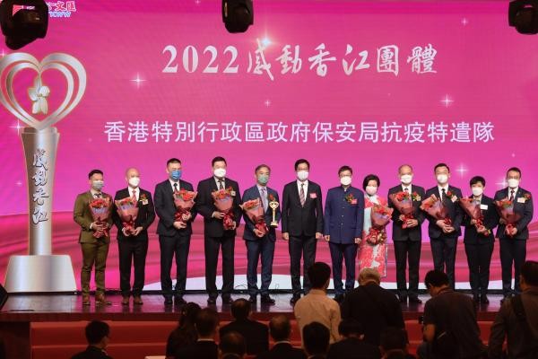 香港中通社圖片 本次活動共評選出5個“2022感動香江團體”,7位“2022感動香江人物”,並向奮戰在抗疫一線的內地援港醫療隊頒發了“2022感動香江特別致敬”獎。活動旨在通過禮讚楷模、表彰精英,推動香港社會凝聚共識,開創發展新局面。 相關新聞