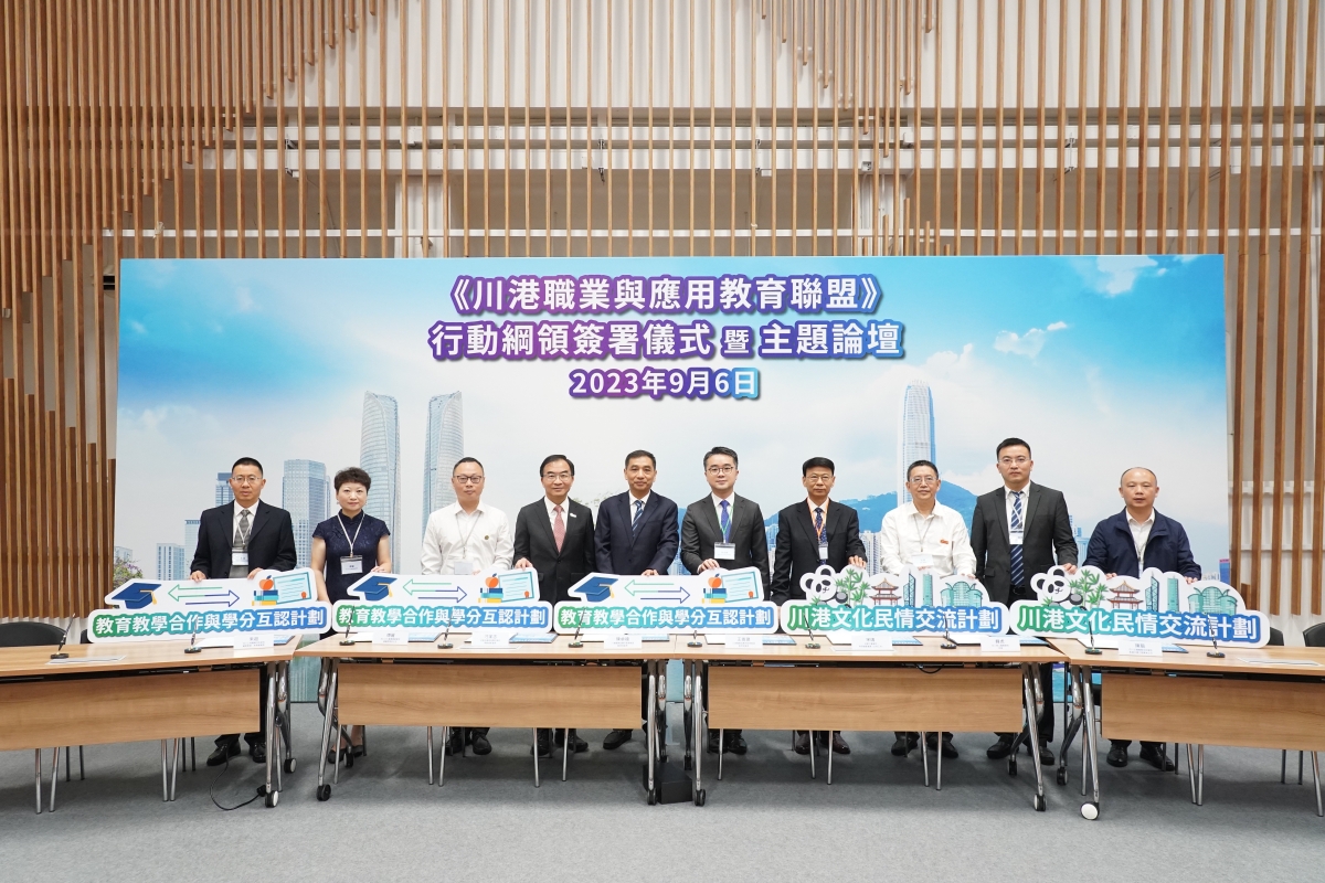 香港中通社9月6日電 (譚暢)川港職業與應用教育聯盟行動綱領簽署儀式暨主題論壇,於6日在港專賽馬會本科校園舉行,期望建立起四川與香港跨地域、跨院校、跨界別的合作交流平台。