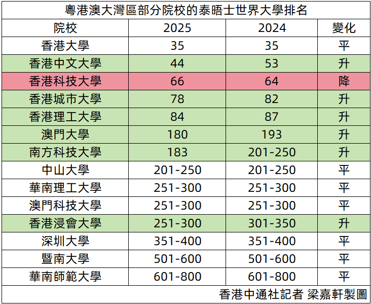 香港中通社1月22日電 (記者 梁嘉軒)《泰晤士高等教育》(THE)最新更新2025年世界大學排名,香港、澳門及多所灣區內地院校排名上升,其中香港繼續有5所大學位列全球百強,澳門、深圳高校成績亮眼。