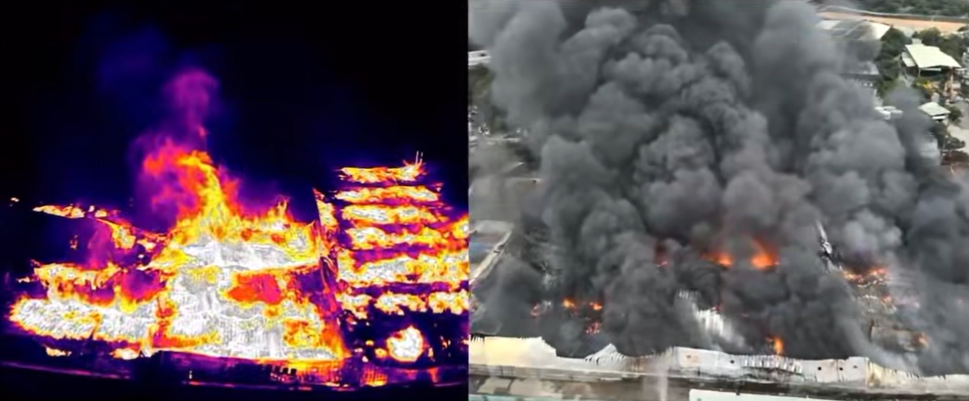 2025年5月天水圍物流倉庫大火。圖源:香港消防處