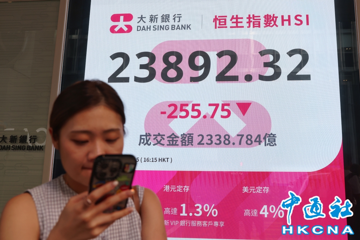 香港中通社7月9日電 (記者 徐嘉儀)美國關稅陰霾未散,港股失守24000點。恆生指數9日收市報23892點,跌255點。大市成交額為2338億港元。