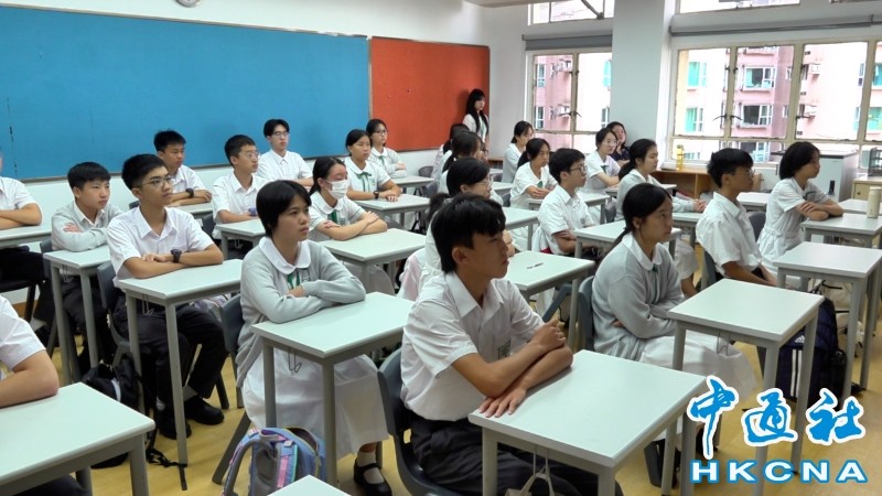 9月3日上午,培僑中學學生在教室內觀看直播。香港中通社記者 梁嘉軒攝