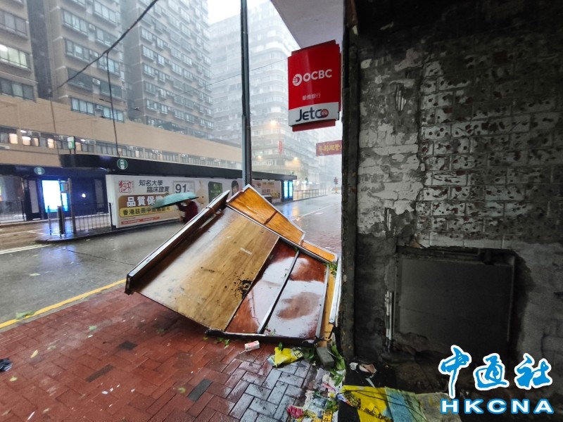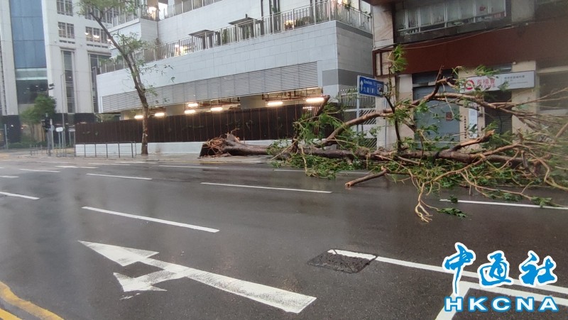 香港中通社9月24日電 題:香港發出“10號波” 有高層建築被吹至擺動
