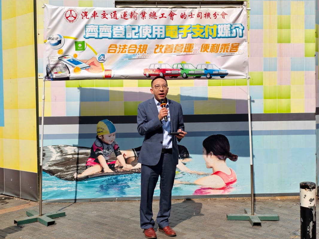的士司機在上環林士街停車場服務站登記使用電子繳費媒介。香港中通社記者 梁嘉軒攝