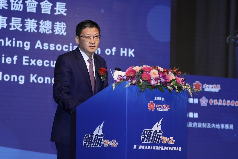 孫煜:橫琴及前海方案等為香港發展增添新動力“領航‘9+2’·第二屆粵港澳大灣區發展論壇暨頒獎典禮”今日(11月5日)上午9時在香港舉行。香港中資銀行業協會會長、中銀香港副董事長兼總裁孫煜致辭時表示,國家發布《橫琴粵澳深度合作區建設總體方案》、《全面深化前海深港現代服務業合作區改革開放方案》,以及特首林鄭月娥提出的“北部都會區”發展策略,這些規劃和政策在地理空間上、在體制機制上,為灣區擴容,為香港發展增添新動力。