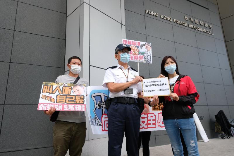 流竄英國的前亂港區議員丘文俊自10月31日起在社交網站發帖鼓吹所謂“全民杯葛立法會選舉”,配圖更公然展示帶有煽動分裂國家含義的口號。有多批市民及團體今日早上(11月17日)自發前往警察總部,舉報丘文俊煽惑他人不投票或投無效票涉嫌違反國安法,要求執法部門盡快徹查嚴懲亂港分子丘文俊。