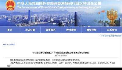 針對英國外交發展部更新所謂人權和民主報告,對包括中國在內31個國家的人權狀況說三道四,並對香港事務指手畫腳,粗暴干涉中國內政,外交部駐港公署發言人25日表示強烈不滿和堅決反對,敦促英方反躬自省,收起“教師爺”般的惺惺作態。