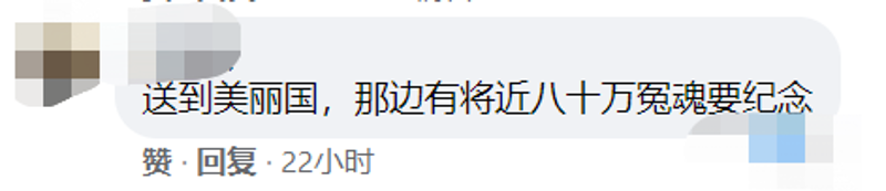 網友評論 還有網友聯想到因美國政府“失敗”的抗疫政策而失去生命的人,直言應該“送到美國,那邊有將近80萬冤魂要紀念。”