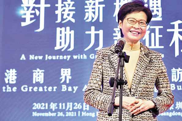 香港特區行政長官林鄭月娥 香港《文匯報》記者 攝 本次活動以“對接新機遇,助力新征程”為主題,外交部駐港特派員公署特派員劉光源、香港特區行政長官林鄭月娥、國家發改委副主任叢亮、國務院港澳辦副主任黃柳權和外交部部長助理吳江浩先後致辭。 劉光源表示,此次“雲端訪問”是一次發現之旅、合作之旅,將打開一扇窗,讓外國在港商界看到擴大對外開放的“中國決心”、構建新發展格局的“中國機遇”、搶搭中國發展快車的“香港優勢”。 劉光源指出,面對大灣區新一輪開放和建設熱潮,歡迎在港商界做“早起的鳥兒”,“起而行之”的行動派,積極投身大灣區建設,實現企業自身的加速度騰飛。 林鄭月娥致辭時表示,大灣區被視為推動“一國兩制”事業發展的新實踐,香港作為國際金融中心,將提供平台,既讓海外資金進入大灣區,也讓內地企業籌集資金進軍國際市場。 林鄭月娥說,在克服嚴峻的政治挑戰之後,香港已重回“一國兩制”的正軌,並已作好準備,在“一國兩制”的憲制秩序下,充分發揮獨特優勢。 黃柳權表示,中國政府堅持全面準確貫徹“一國兩制”方針不會變、不動搖,不變形、不走樣。香港回歸以來的實踐證明,“一國兩制”是解決歷史遺留的香港問題的最佳方案,是保持香港長期繁榮穩定的最佳制度。 黃柳權表示,香港作為單獨關稅區和國際金融、貿易、航運中心,具有簡單低稅制、資本流動自由、國際聯系廣泛等獨特優勢和高度法治化、市場化、國際化的營商環境,是全球最自由經濟體之一。中國政府將繼續支持香港鞏固提升競爭優勢,助力國家全面開放。 多位負責大灣區事務的主要政府官員、大灣區知名企業代表,以及外國在港商會、香港本地商會和企業負責人等代表現場出席活動,另有數百名外國在港企業代表“雲端”參會。(完) 【編輯:张丽欣】