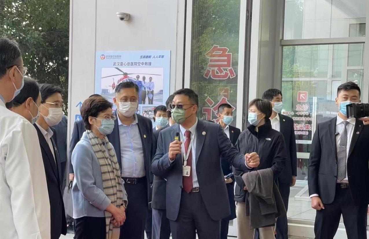 林鄭月娥昨日到訪港資武漢亞心總醫院。(長江日報圖片)