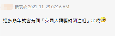 還有網友想到公然違反承諾炮制“5+1入籍(居住滿5年,取得永居權滿1年)”的英國,諷刺稱過幾年就會有個“英國入籍騙財關注組”出現。