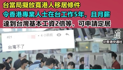 (2019年香港發生“修例風波”以來,台灣民進黨當局不斷消費香港、抹黑大陸,令原本選情不妙的蔡英文得以連任。) 搞笑的是,盡管知道被騙,這些選擇移民台灣的香港“黃絲”們,仍希望台灣能體恤已進台居留的港人,什麽“不要提高門檻及拖延審批進度,盡快讓經調查無危害‘國安’實證的申請人定居(入籍)台灣”雲雲。 而聽聞“黃絲”笑著去台灣哭著離開,廣大香港網友紛紛留言表示,台灣民進黨炒作香港“修例風波”撈政治本錢、撈選票,早已是公開秘密,但即便這樣還要去,就不要怪人,只能怪自己蠢,“(被)用完即棄”。