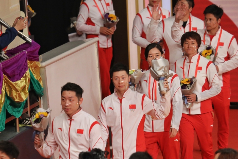 香港新聞網12月4日電  “奧運健兒大匯演”4日下午在香港伊利沙伯體育館舉行,馬龍和許昕“打頭陣”炫技,兩球齊打,贏得市民“比心”。被問及當隊長的樂趣時,馬龍戲稱“平時可以教小孩,對年輕隊員也可以‘兇狠’一點兒,這是我的樂趣。苦的就是,發言時需要隊長發言。”(記者 李明珠)