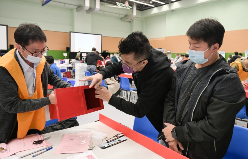 (中央點票站工作人員了解開啟投票箱的程序 香港中通社資料圖) 選舉事務處發言人指,投票過程十分簡單,選民前往投票站後,出示香港身份證,並按工作人員指示短暫拉開口罩,工作人員會用平板電腦掃描選民的身份證,核對相關資料,隨後發出選票。 在地方選區,選民必須用投票站提供的印章,於投票間內,在候選人相對的圓圈內蓋上一個“剔”號,再將不經摺疊的選票正面向下,放入藍色投票箱。在功能界別,則要將選票放入紅色投票箱。 發言人表示,絕大部分已登記選民,只能獲發一張所屬地方選區的選票,與過往“一人兩票”的情況不同。此外,選民只能在投票通知卡上列明的投票站投票。 發言人強調,投票自主、保密,選民須於投票間內親自填劃選票。任何選民在投票站內干擾別人投票,或使用電子器材通訊、拍照、錄音或錄影,即屬違法。(完) 【編輯:刘春】