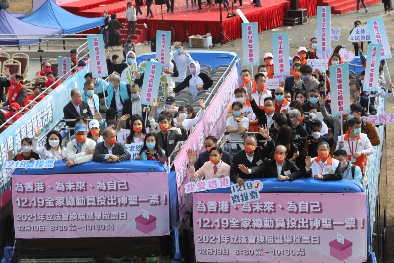 香港中通社圖片 作為完善香港選舉制度後的首場立法會選舉,對落實“愛國者治港”,推動香港良政善治有重要意義。在當日上午舉行的啟動禮上,“為港為己投一票”等口號響徹維港,現場逾千名選民支持。 現場所見,市民高舉“我愛香港”“我有票我選擇”“踴躍投票”等宣傳牌,停泊在附近的巡遊車也掛滿了“全家總動員投出神聖一票”的標語。 香港四川社團總會社員身穿大熊貓特色服飾現身支持。在香港居住十幾年的社員劉小姐對香港中通社記者表示,投票是為港為己的事,希望香港繁榮昌盛,所以要積極參與,選出自己喜歡並有擔當的議員。 香港珠海社團總會一位工作人員對記者表示,社團參與此次活動是想以實際活動積極支持選舉,鼓勵市民踴躍投票。社團內部發出通知後,成員都很主動過來參加巡遊。 香港廣東社團總會主席龔俊龍發言時表示,要全力以赴做最後衝刺,香港要向世界展示一場成功的選舉。市民支持新選制,就是支持有香港特色的優質民主,支持“一國兩制”實踐行穩致遠。 啟動禮結束後,100輛由巴士、貨車、小巴、七人車、出租車組成的車隊,分五路巡遊全港各區。 【編輯:张琦】