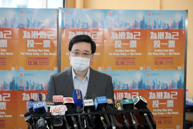 香港新聞網12月19日電 香港立法會選舉19日舉行,香港特區政府政務司司長李家超下午巡視票站時表示,拖垮政府施政的破壞年代不會復在,本次立法會選舉意義重大,呼籲市民積極投票。