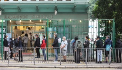 香港中通社圖片(香港中通社記者 謝光磊 攝) 在新選制下,香港立法會由原來的70席增加至90席,由三個不同界別產生,分別是選委會界別40席、功能界別30席和地區直選20席。 選舉委員會界別選民人數為1448人,截至下午6時30分,共1401人投票。 功能界別選民人數21萬,截至下午6時30分,共57282人投票。 競爭最為激烈的要屬地區直選,其選民人數多達447萬人,截至下午6時30分,共逾111萬人投票。(完) 【編輯:王瑶】