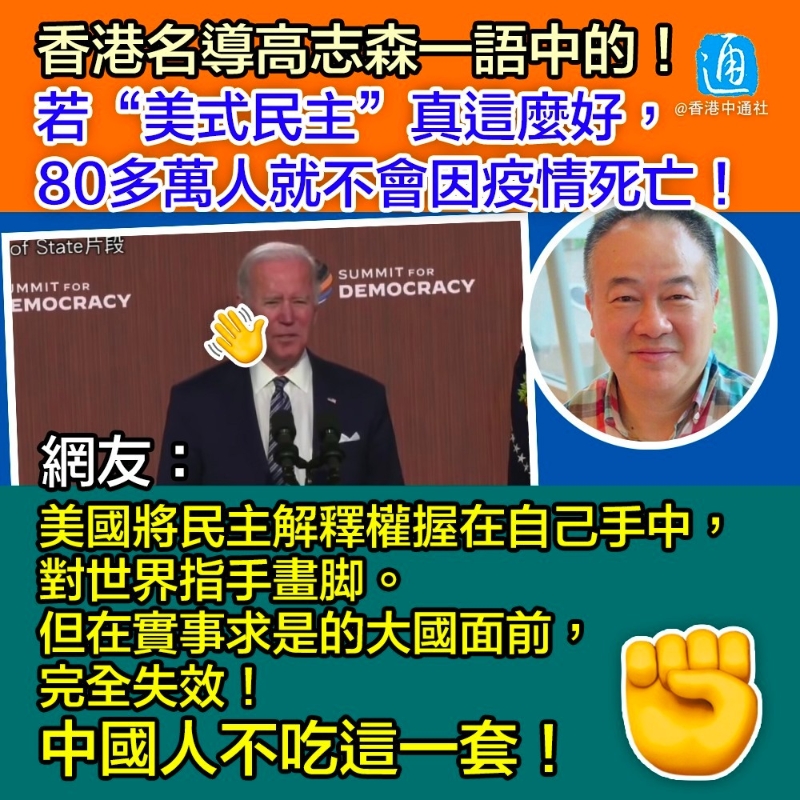 香港名導高志森:若“美式民主”真這麼好,80多萬人就不會因疫情死亡!分享到: