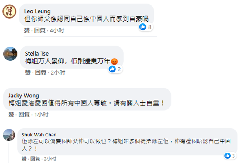 與梅艶芳的愛國情懷相比,何韵詩的“反中亂港”行徑令人不齒! 她曾要求聯合國把中國從人權理事會除名,還跑到美國國會“作證”,鼓動議員通過制裁香港的法案。香港國安法生效後,她依然不知收斂,繼續發表煽動性言論,還參加反對派非法組織的“初選”,為亂港分子黃之鋒等人站台。 如今即將接受法律審判的她竟好意思提起梅艶芳…… “你師父認同自己是中國人,也感到自豪!”香港網友紛紛直斥何韵詩:“還好意思抬梅艶芳出來?”“在香港搞分離主義,現在違法被抓後,又拿梅姐出來。好沒品”“梅姐萬人景仰,她則遺臭萬年” 。 “梅姐愛國愛港值得所有中國人尊敬,請有關人士自重!”還有網友喊話何韵詩。