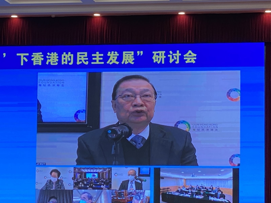 譚耀宗說,不同國家的歷史和實際情況決定了民主在不同國家的實施以及理念有所不同。香港之前所謂的民主也不過是反中亂港分子企圖破壞特區政府施政,危害國家主權安全的藉口。香港特區應當根據自身的實際情況,建設具有自身特色的民主制度。 他認為,未來香港民主制度發展最大的核心精神首先是要維護“一國兩制”。其次,協作特區政府實施良政善治,深入社會解決深層次矛盾。最終,香港的民主制度能保持香港社會繁榮和穩定。 譚耀宗強調,中央才是香港民主發展最有力的支持者。反中亂港勢力及其背後的外部敵對勢力是真正阻礙香港特區民主向前發展的罪魁禍首,他們無所不用其極,為香港帶來的巨大傷害,在 2019年被推到極致。面對他們的所作所為,中央始終運籌大局、審時度勢、協調各方一一應對, 憑藉一系列標本兼治的舉措,香港局勢從根本上實現了由亂到治的重大轉折,並把香港民主發展重新帶回到正確軌道上。 譚耀宗最後指出,香港特別行政區民主發展重回正軌後前景一片光明。“一國兩制”的強大生命力和制度韌性是香港特區民主發展的根本保障。在“一國兩制”進入發展新紀元的重要時刻,包括全體香港同胞在內的廣大中國人民都有信心、有 智慧、有能力,把實行資本主義制度的香港管理好、建設好, 並把符合香港特區實際情況的民主制度發展好、完善好。在中央的全面管治權得到進一步彰顯、“愛國者治港”的初心得到進一步落實下,“一國兩制”各項政策一定會見效,各項預期目標也一定能夠達到。 【編輯:李泺】