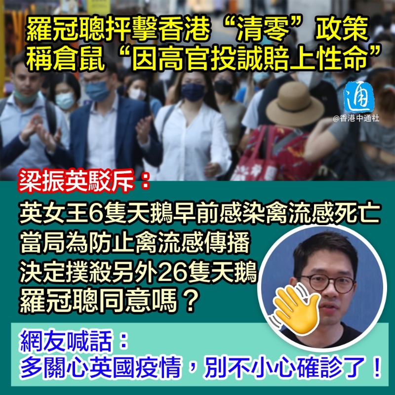 羅冠聰抨擊香港“清零”政策 網友喊話:多關心英國疫情,別不小心確診了!分享到: