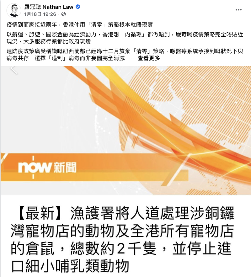 他又以新西蘭舉例,稱其“防疫政策廣受稱讚”,但在去年12月也放棄“清零”策略,在醫療系統承受到的狀況下與病毒共存,選擇“遏制”病毒而非妄圖完全消滅。 羅冠聰又妄自推斷稱,港府仍推行“清零”策略的唯一解釋,就是政治掛帥,將與內地維持同一步調作為所有政策的唯一目的。