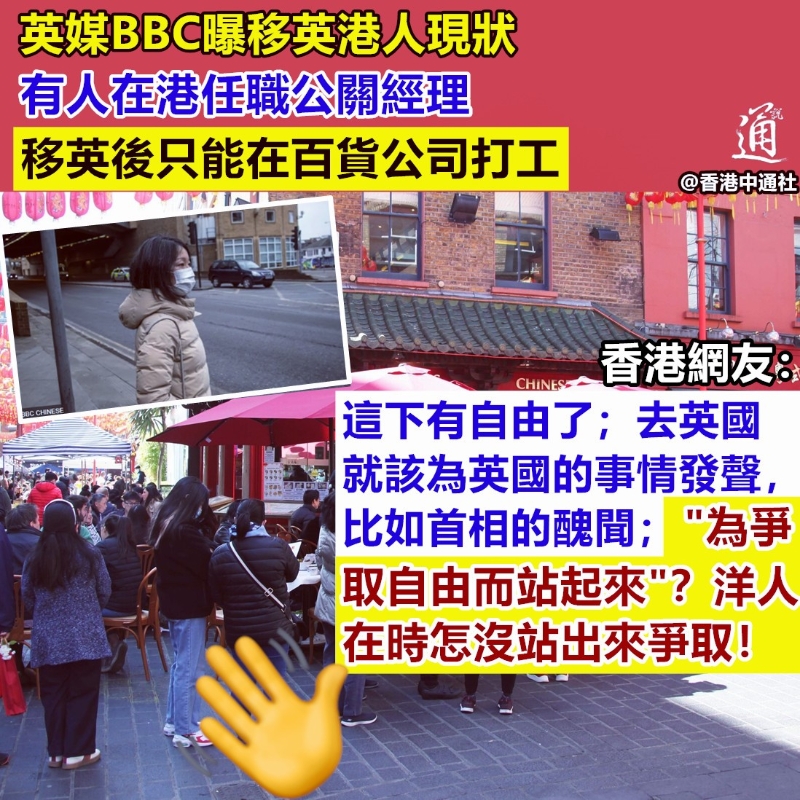 BBC承認:港人移英有“落差”,香港中產無奈轉行!香港新聞網2月8日電 英國放寬BNO簽證一年,移英港人過得如何了?從英媒BBC中文網的最新報道來看,似乎過得不如意! BBC中文網今日(8日)發表所謂“英國BNO放寬一周年:香港農夫、社工、公關的移英經歷”一文。在該文中,他們采訪了三名移英港人,分別為香港前有機農場負責人黃如榮、前公關經理Charlotte以及前“社工”Emily(化名)。 報道聲稱,原本在香港經營有機農場的黃如榮,在經歷“修例風波”後,感受到香港的“自由”等核心價值遭到“吞噬”,為了兩名兒子的未來,於2019年12月1日舉家移英。 不過移英後,黃如榮的日子顯然不如在香港“舒坦”!