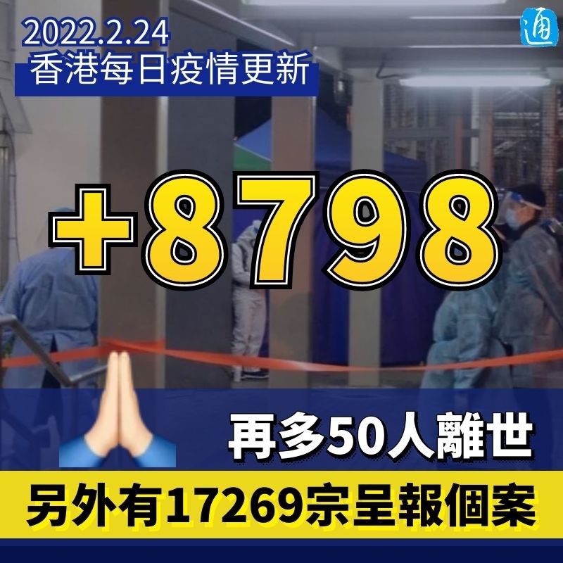 香港新聞網2月24日電 香港特區政府衛生署衛生防護中心24日通報,新增8798宗新冠確診,其中3宗為輸入個案,當日呈報個案有17269宗。